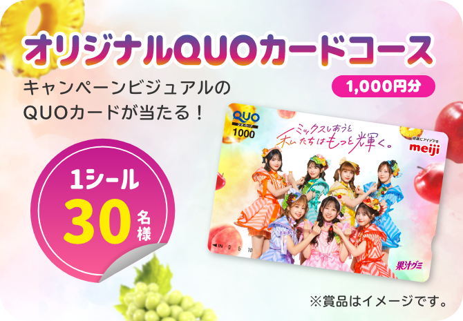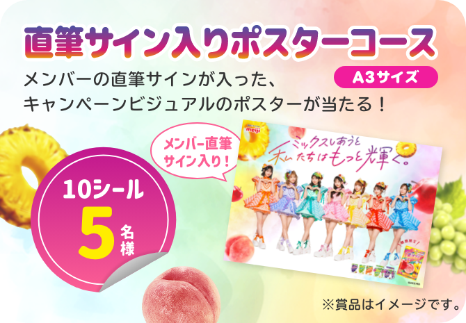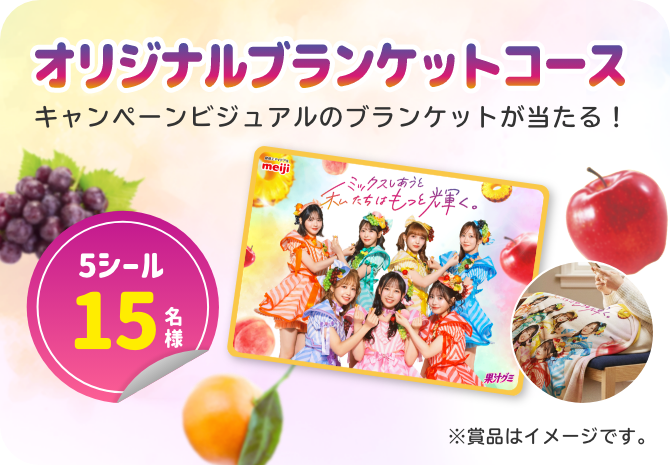 実施期間中に対象商品を購入したレシートの画像をキャンペーンサイト上にアップロードして応募すると抽選で50名様に果汁グミ×FRUITS ZIPPERコラボグッズがもらえます。