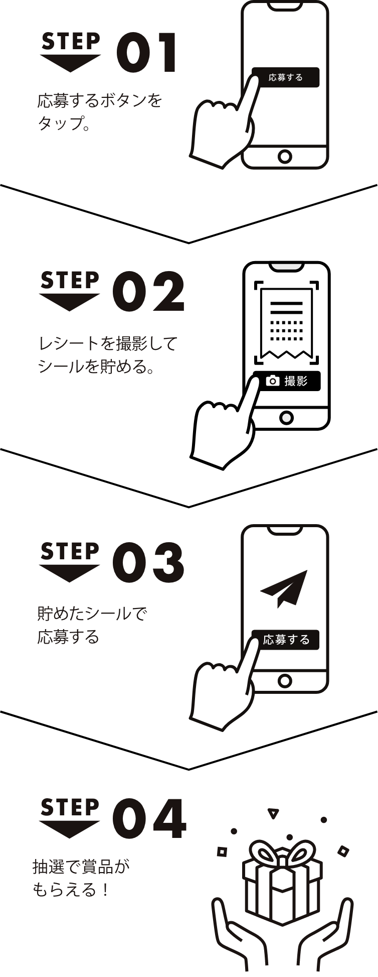 ※レシート情報の読み取りに際し、キャンペーン事務局側での確認中に応募期間を過ぎた場合に関しては、応募シール付与後2026/03/31(火)23:59までご応募いただけます。また応募シールが残っている方に関しても同様の時刻までご応募いただけます。